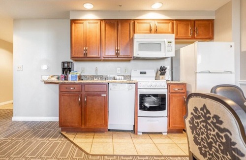 Some suites include wider than typical interior doorways, all doors have lever handles, counter-height microwave, roll-under kitchen sink, roll-in shower, handheld shower head, grab bars in shower, grab bars in tub, grab bars around toilet, raised toilet (higher than typical suites), first floor handicap accessible access or Braille signage for room numbers.