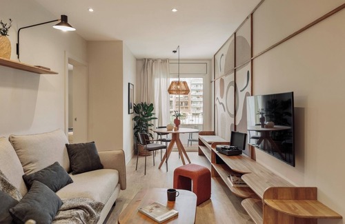 Spectacular apartment in Balmes street, with 2 bedrooms and 2 bathrooms. The kitchen is equipped with state-of-the-art appliances and kitchenware. The beds are equipped with soft bedding, ideal for a good night's rest. The apartment has 2 bathrooms equipped with a full shower and towels. In addition, the apartment is equipped with high-speed WiFi and SmartTV. The apartment has a washing machine, dishwasher and air conditioning for your maximum comfort.