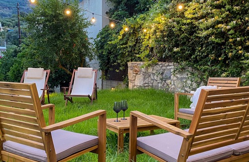 Welcome to Yiama's Seaside Cottage! Our accommodation offers everything you need for an unforgettable and comfortable stay. With two separate bedrooms, one with a king-size bed and the other with two single beds, it is ideal for families and small groups of friends. Our mattresses, bed linens, and pillows are of high quality and certified with "Oeko-Tex" for guaranteed comfort, rest, and hygiene throughout your stay. In our cottage, you will find a cozy living area with a modern design, a fully equipped kitchen, and a modern bathroom with a shower that evokes a green oasis. Relax by the fireplace, watch TV or read a book, and allow yourself to immerse in the tranquility that our space offers. And don't forget our garden with the BBQ that we have meticulously cared for, to generously provide you with the comfort and relaxation of Cretan nature day and night.