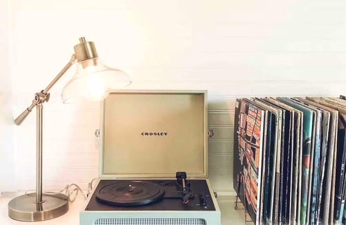 The charming dining area has a record player to play music while enjoying a meal or glass of wine.